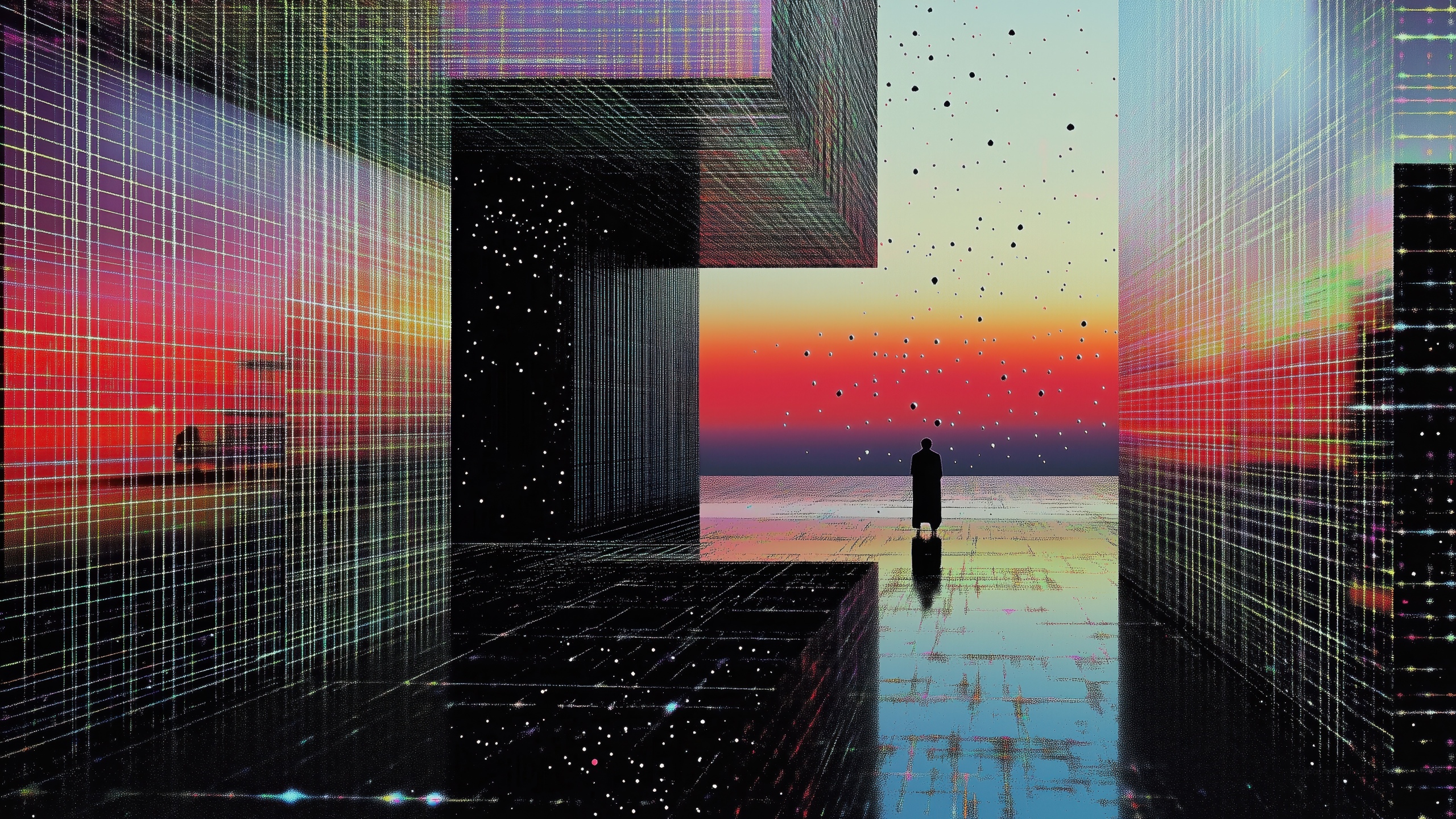Get this spectrum colors retro futuristic background in 3840x2160 4K resolution. Images for download on desktop computer, Windows, iOS, iPhone, and Android in UHD, 1440p, or 1080p.
