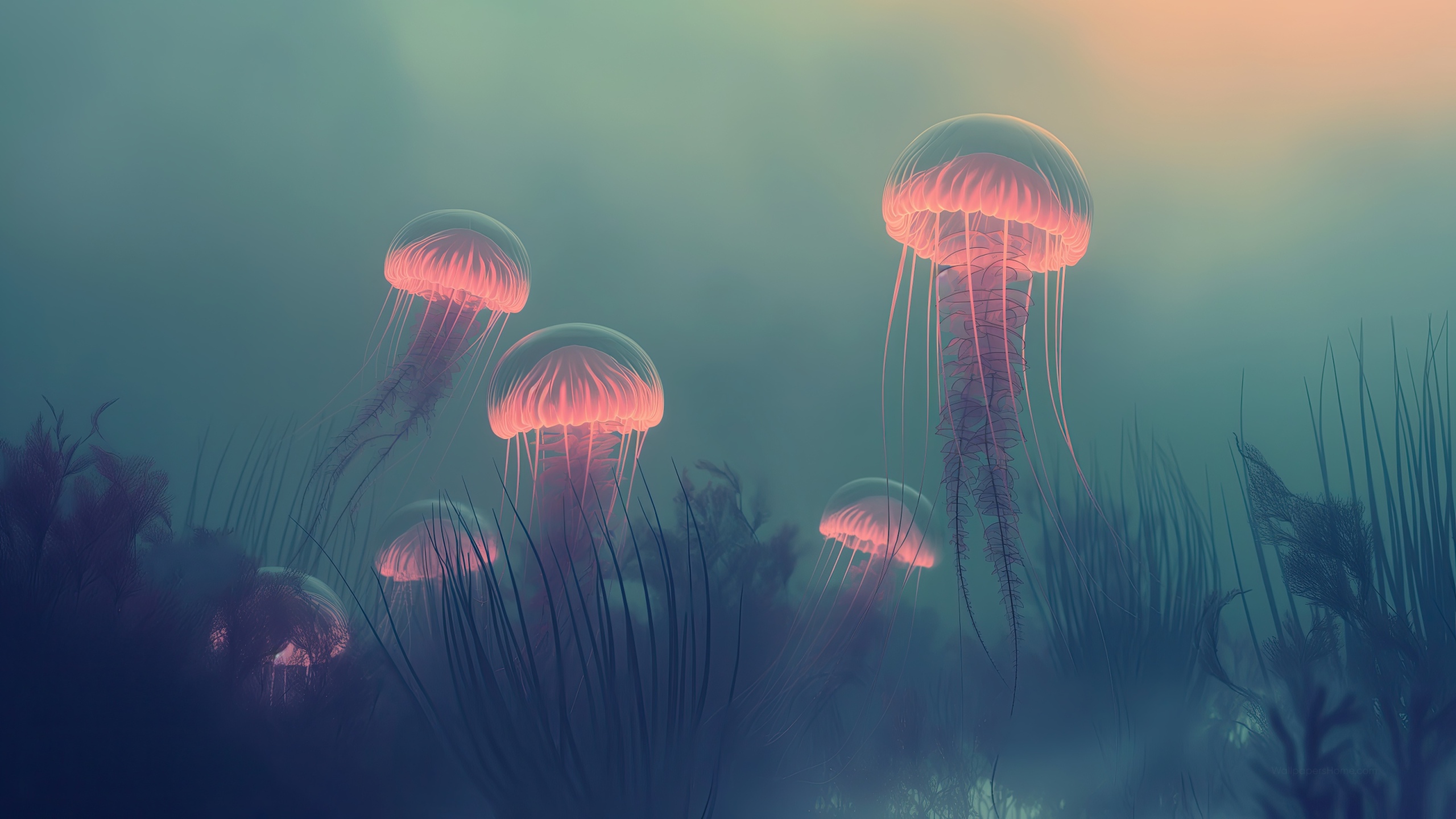 Get this jellyfish ocean life background in 3840x2160 4K resolution. Images for download on desktop computer, Windows, iOS, iPhone, and Android in UHD, 1440p, or 1080p.