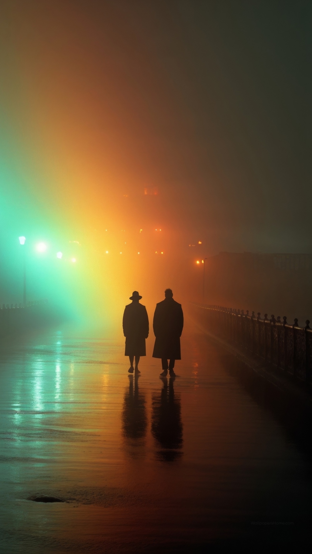 "Colorful sunset paints dreams where silhouettes dance in artistic lighting's embrace."