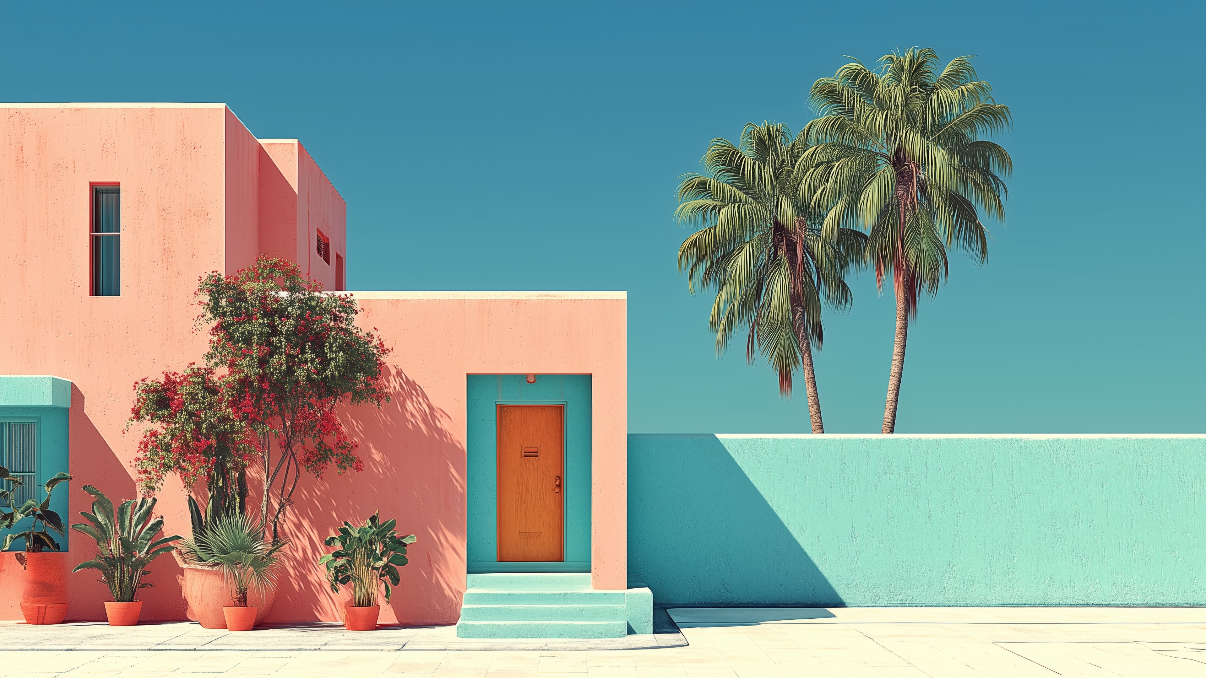 Tranquil Beach Azure Sky 4k Wallpaper / Architecture / Houses and Exteriors