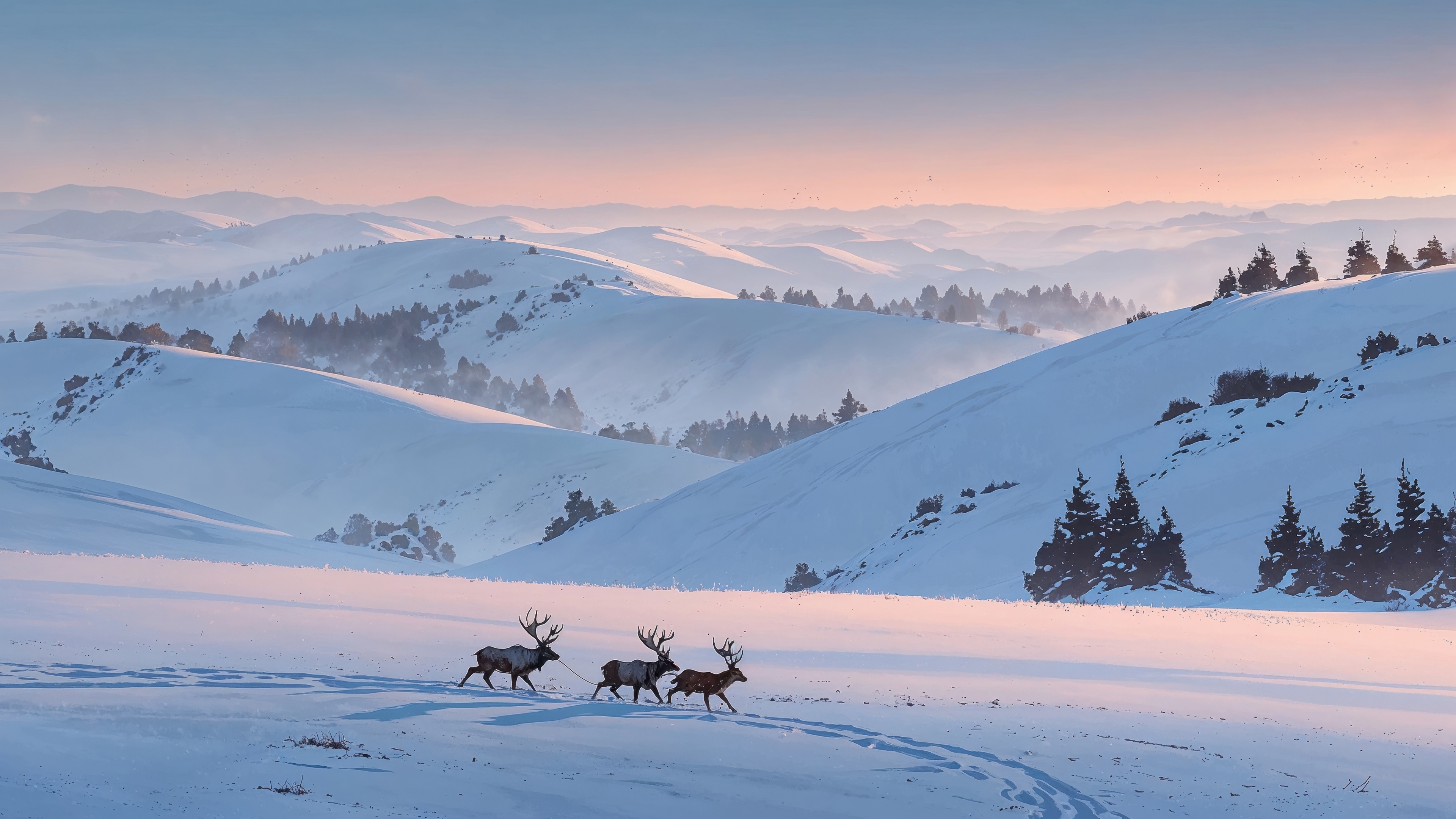 Get this xmas snowy mountain background in 3840x2160 4K resolution. Images for download on desktop computer, Windows, iOS, iPhone, and Android in UHD, 1440p, or 1080p.