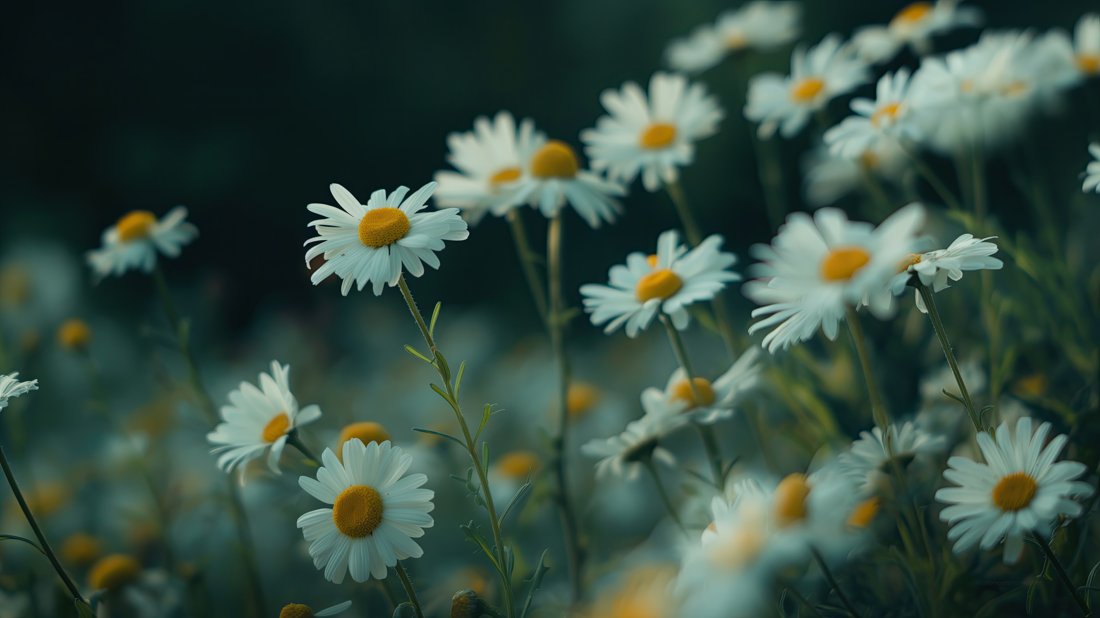 Get this daisies vibrant background in 3840x2160 4K resolution. Images for download on desktop computer, Windows, iOS, iPhone, and Android in UHD, 1440p, or 1080p.