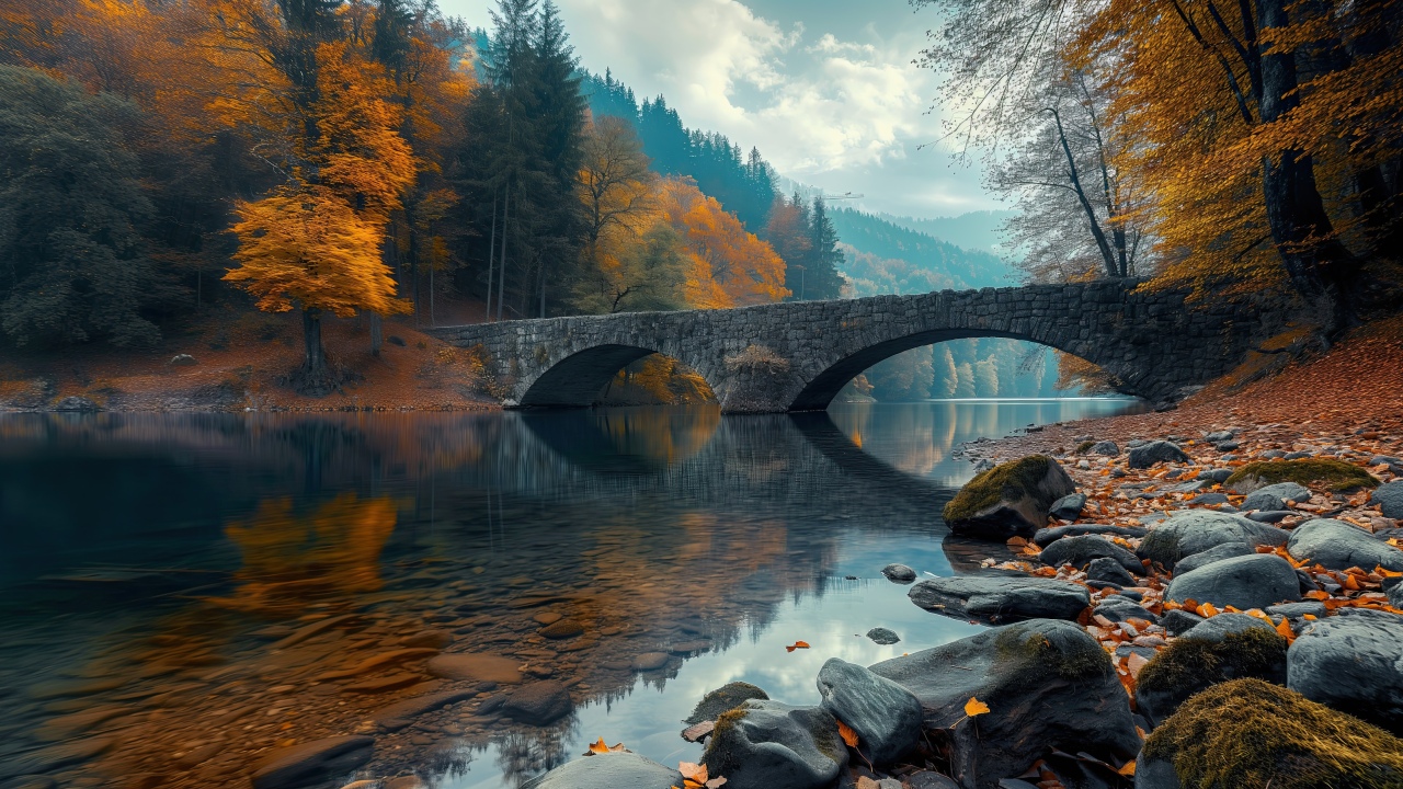 Get this autumn forest lake background in 3840x2160 4K resolution. Images for download on desktop computer, Windows, iOS, iPhone, and Android in UHD, 1440p, or 1080p.