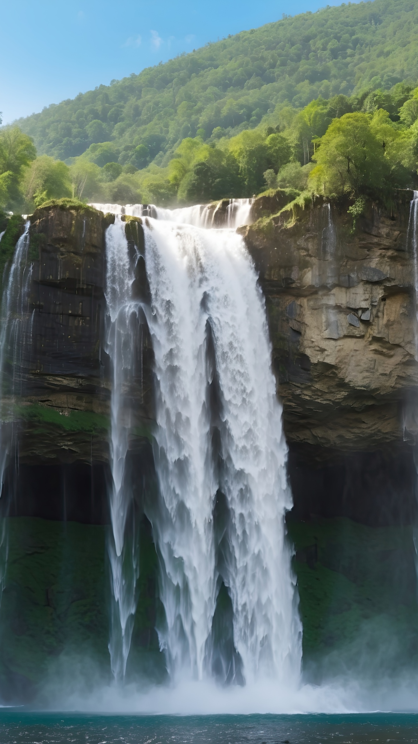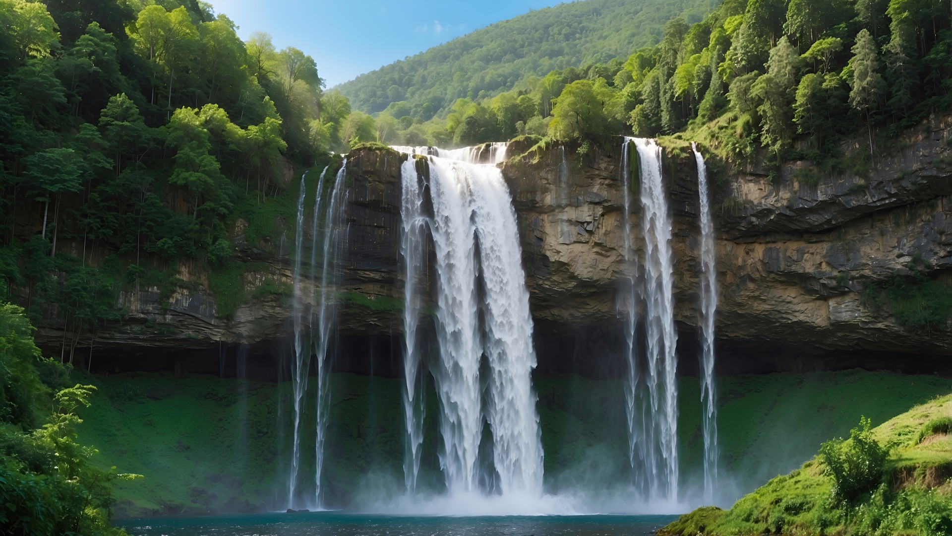 Get this forest waterfall background in 3840x2160 4K resolution. Images for download on desktop computer, Windows, iOS, iPhone, and Android in UHD, 1440p, or 1080p.