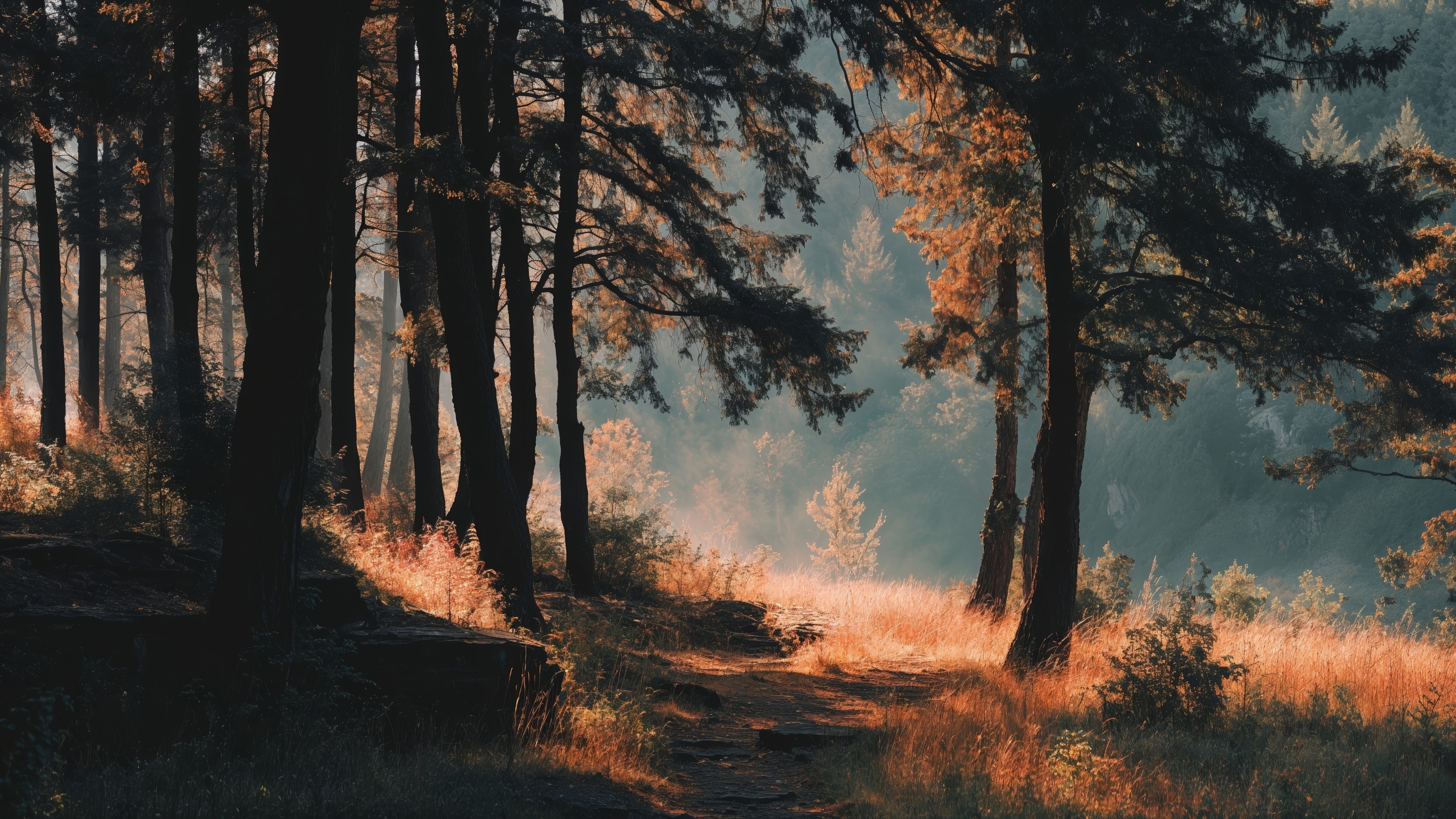 Get this golden hour light peaceful landscape background in 3840x2160 4K resolution. Images for download on desktop computer, Windows, iOS, iPhone, and Android in UHD, 1440p, or 1080p.