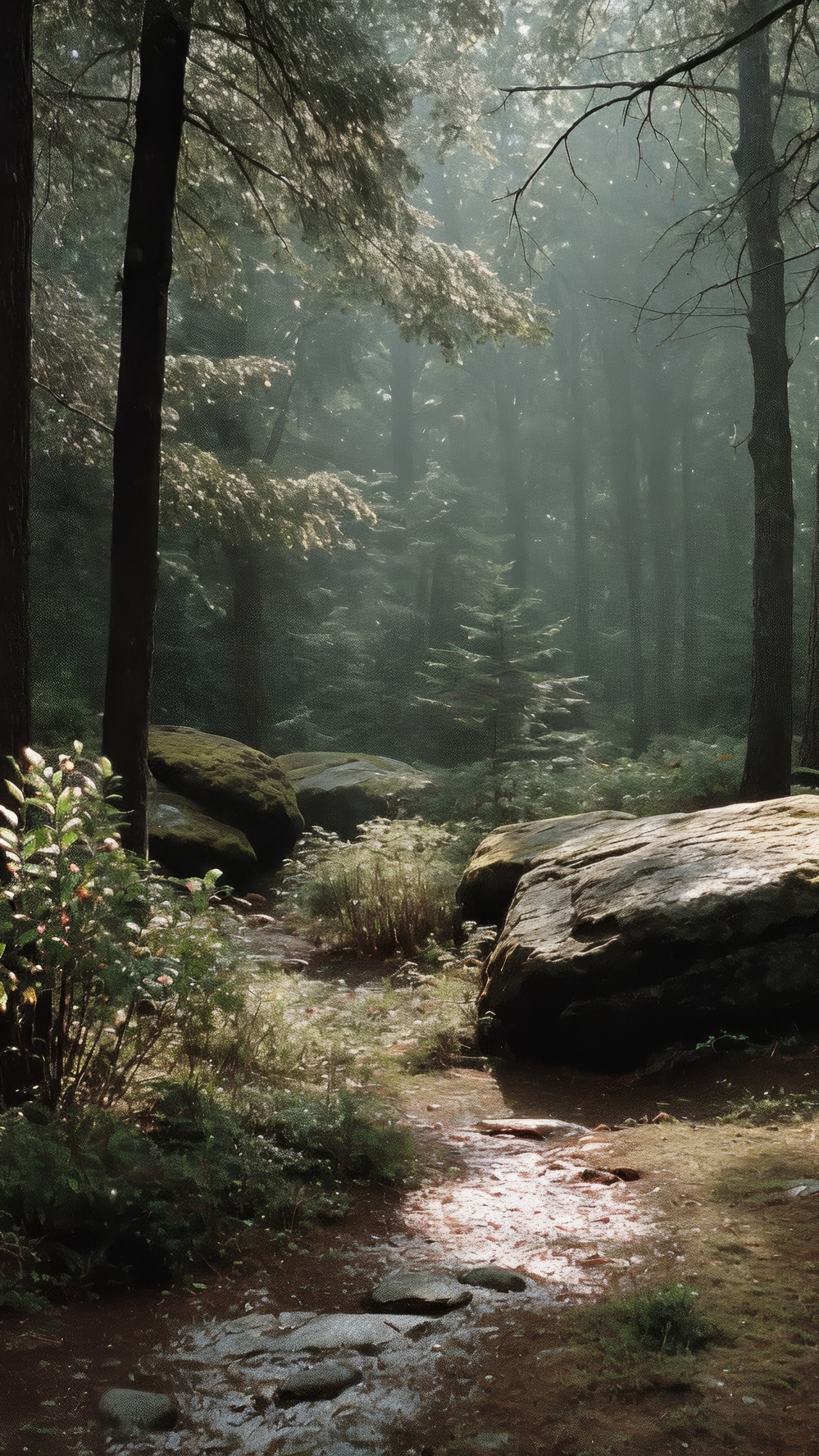 Get this scenic woods serene forest background in 3840x2160 4K resolution. Images for download on desktop computer, Windows, iOS, iPhone, and Android in UHD, 1440p, or 1080p.