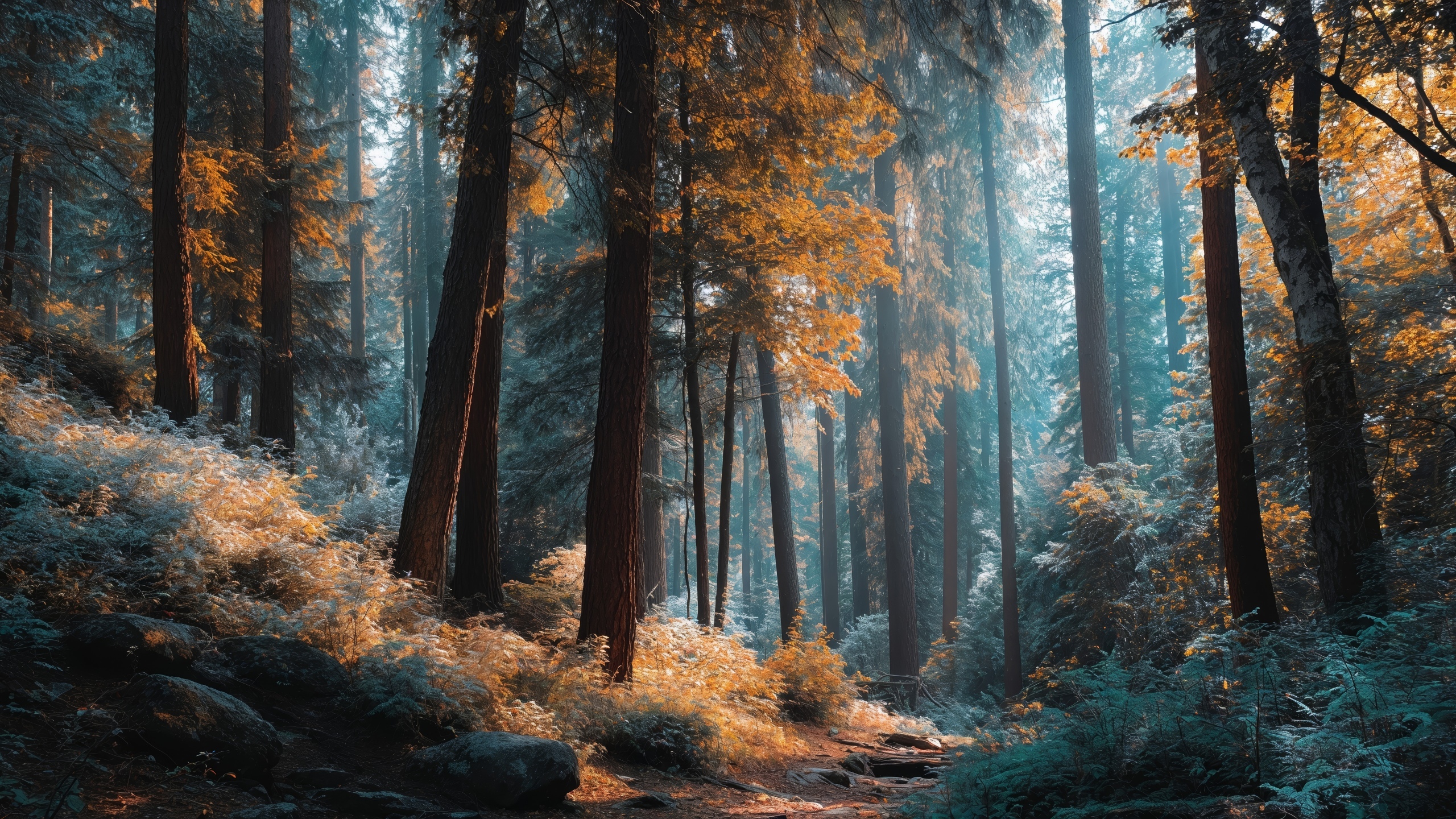 Get this soft glow woodland scenery background in 3840x2160 4K resolution. Images for download on desktop computer, Windows, iOS, iPhone, and Android in UHD, 1440p, or 1080p.