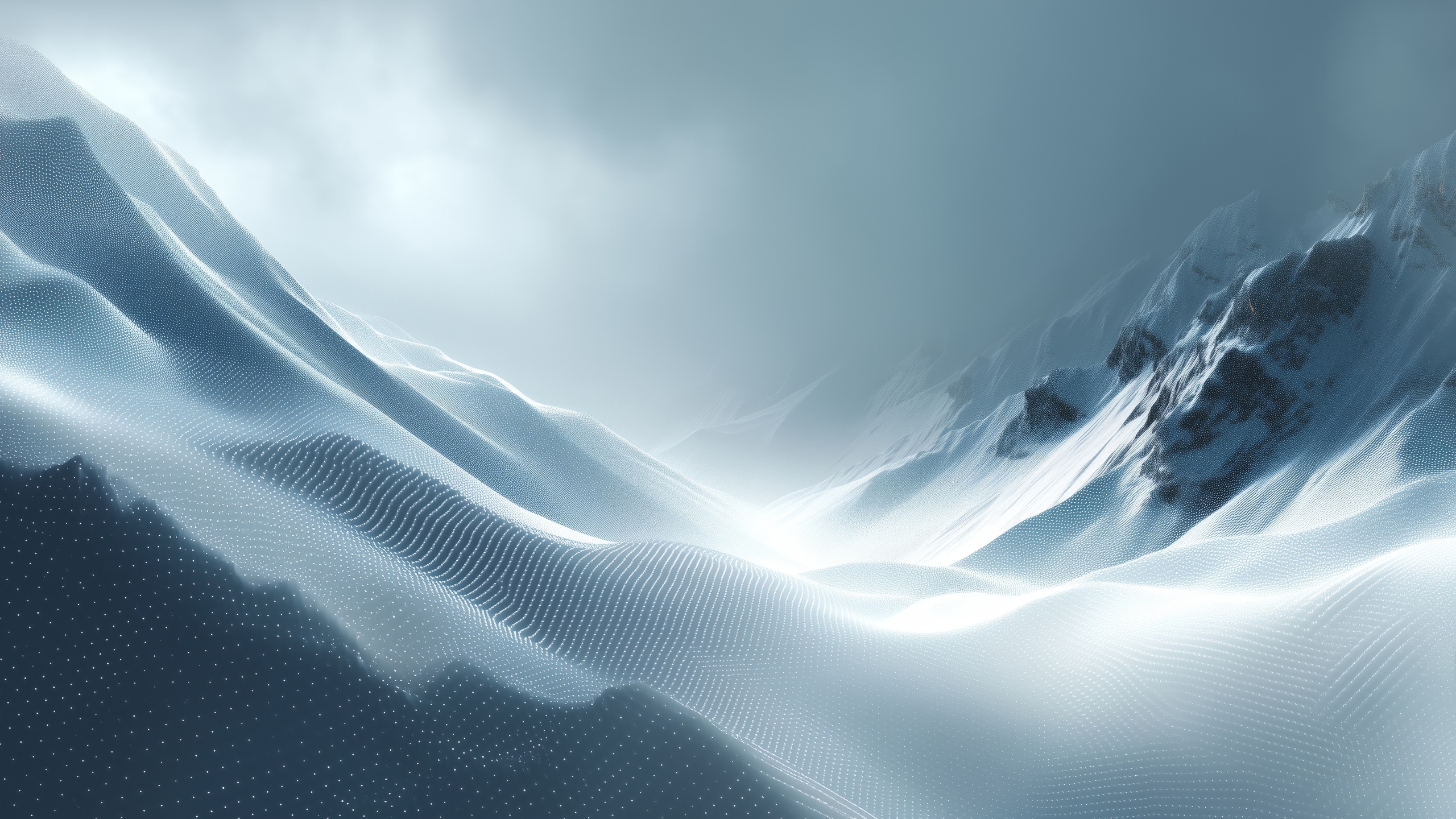 Get this serene winter snowy mountainscape background in 3840x2160 4K resolution. Images for download on desktop computer, Windows, iOS, iPhone, and Android in UHD, 1440p, or 1080p.