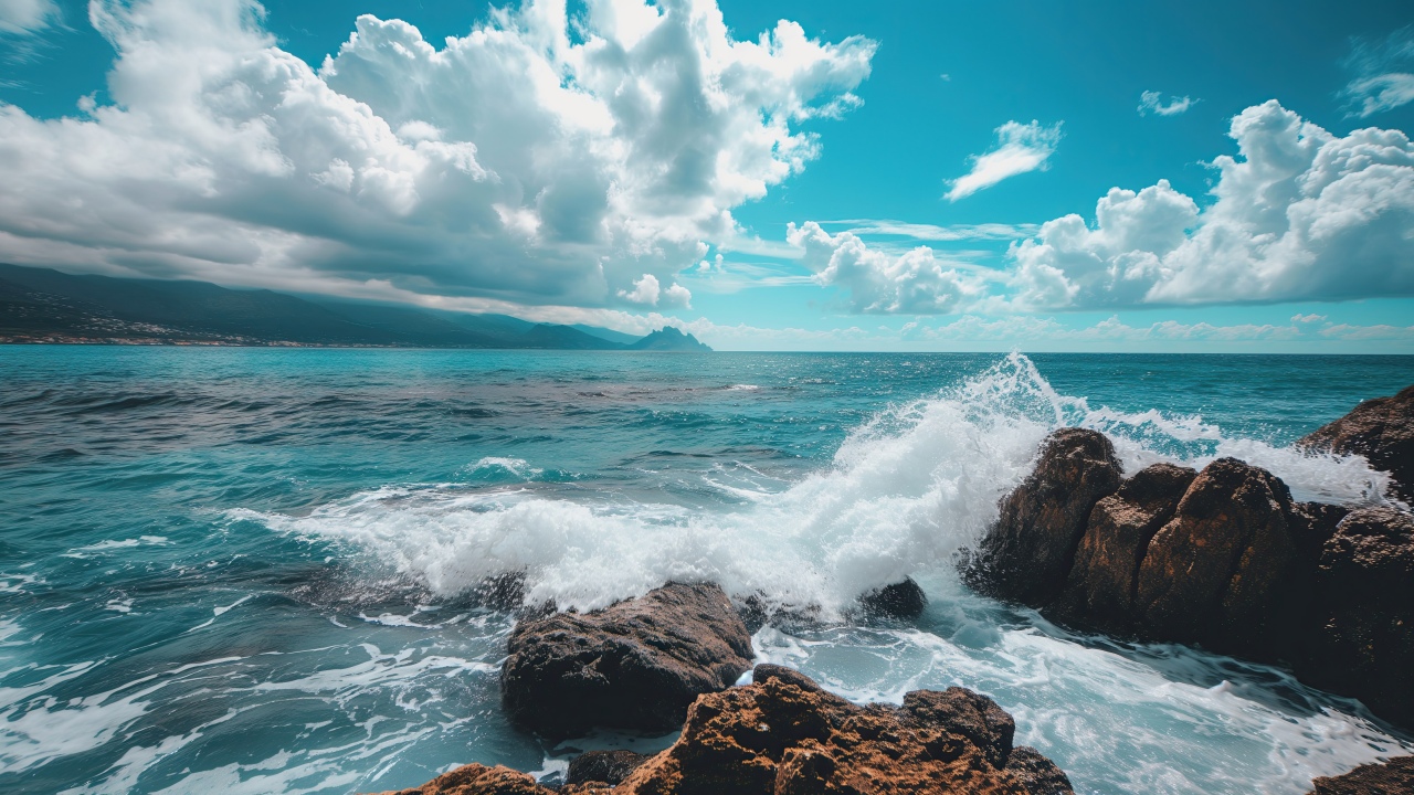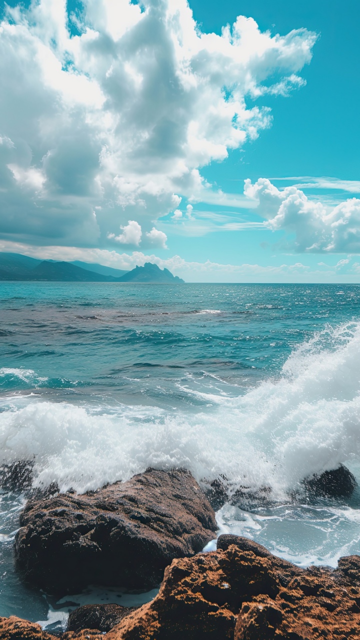 Get this sea rocky shoreline background in 3840x2160 4K resolution. Images for download on desktop computer, Windows, iOS, iPhone, and Android in UHD, 1440p, or 1080p.