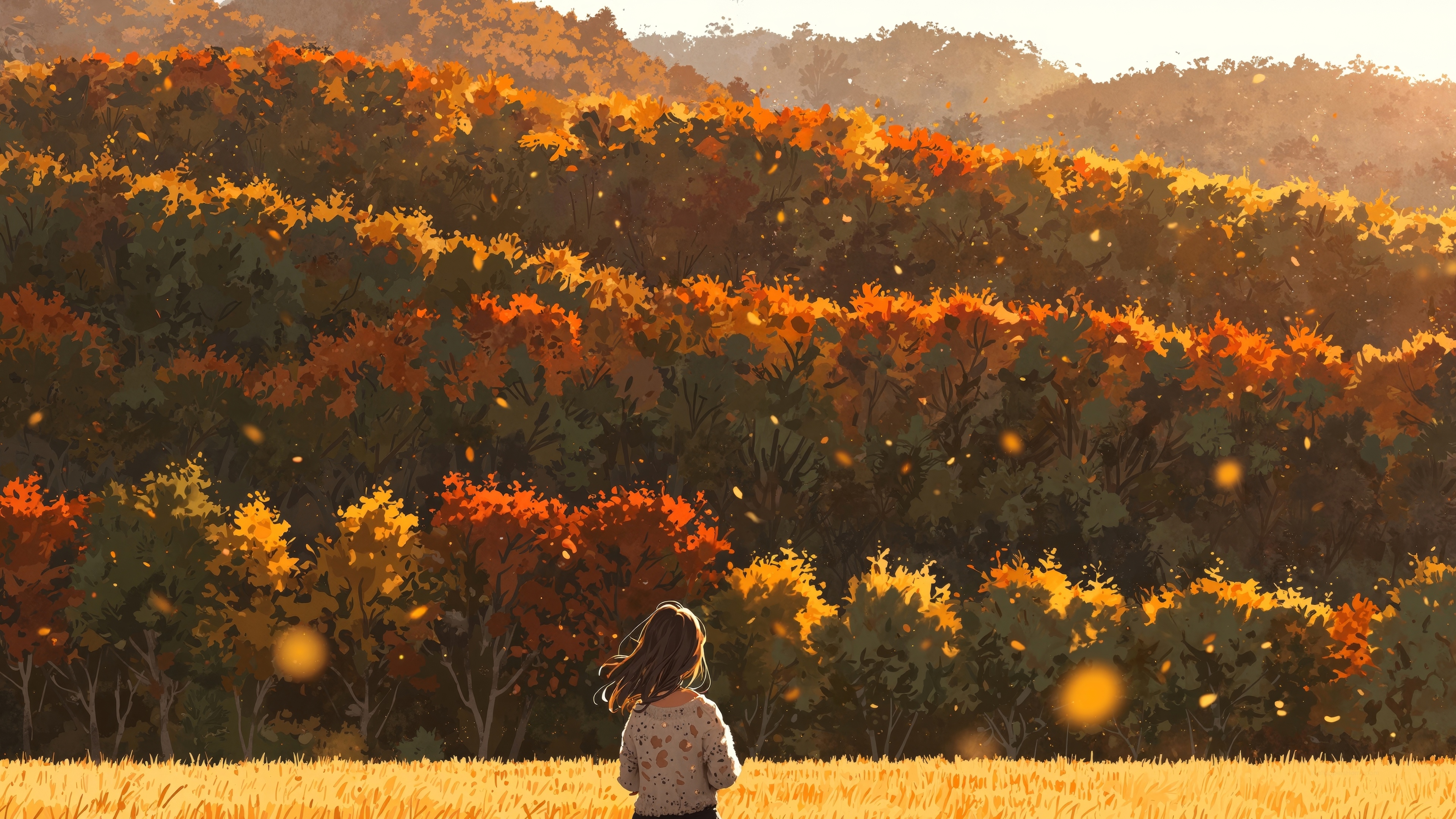 Get this golden meadow nature escape background in 3840x2160 4K resolution. Golden Hour Images for download on desktop computer, Windows, iOS, iPhone, and Android in UHD, 1440p, or 1080p.