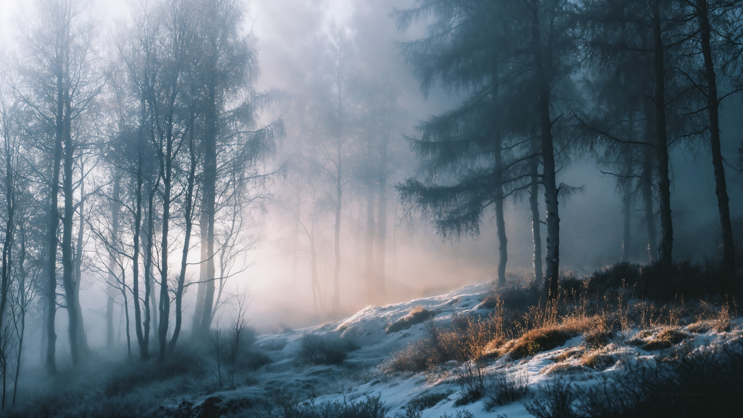 Get this chill foggy forest background in 3840x2160 4K resolution. Images for download on desktop computer, Windows, iOS, iPhone, and Android in UHD, 1440p, or 1080p.