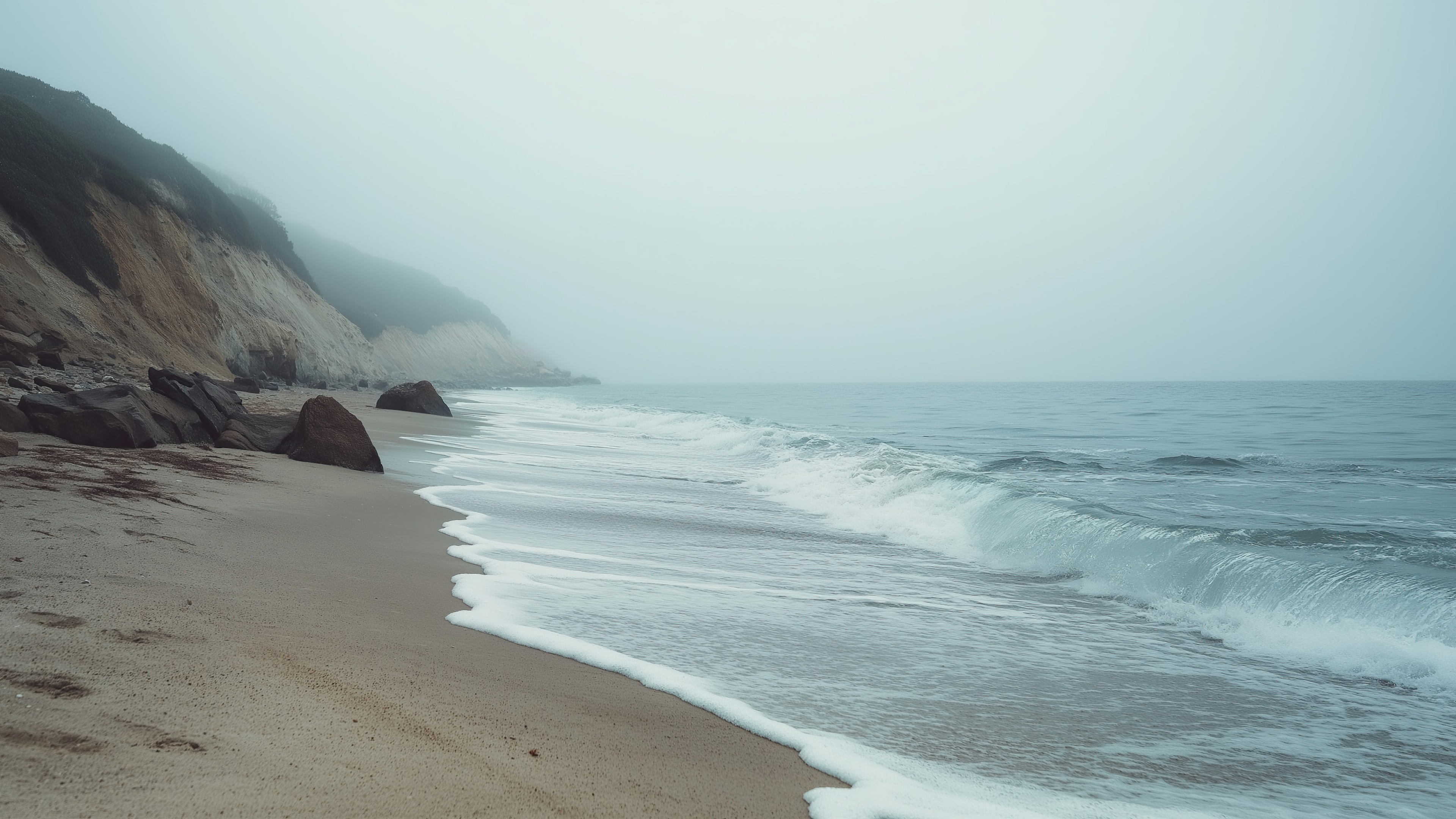 Get this 4k beach gentle surf background in 3840x2160 4K resolution. Images for download on desktop computer, Windows, iOS, iPhone, and Android in UHD, 1440p, or 1080p.